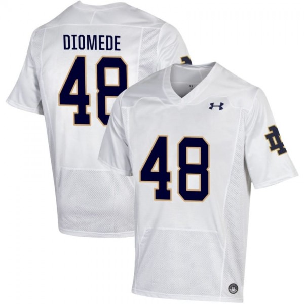 Notre Dame football fans, this one's for you: the Men #48 Marcello Diomede White Player Fighting Irish Classic Fit Football Jersey 37fs0142. Built to last through every win, loss, and celebration, it features sharp, long-lasting graphics of Marcello Diomede's name and number, plus the iconic Notre Dame branding. Grab yours today and support the Irish in style!