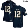 Navy #12 Blake Hebert Youth Durable Irish University Football Stitching Jersey 2Ykj0n19