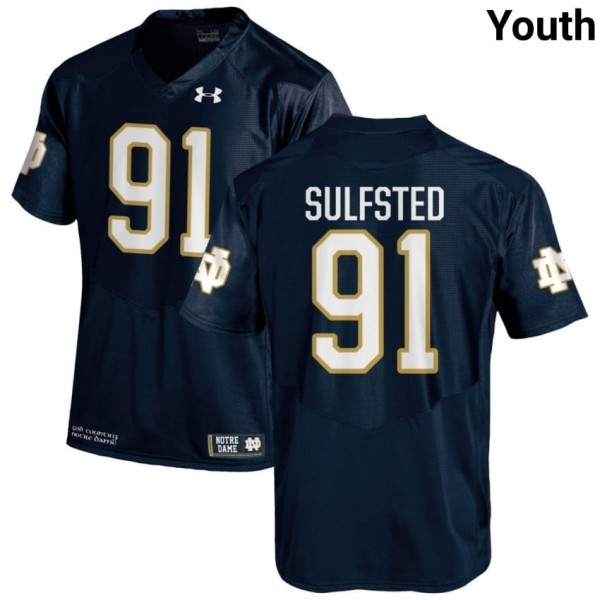 Navy #91 Gordy Sulfsted Youth Durable Irish High School Football Stitching Jersey 5AD47269