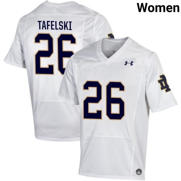 • Notre Dame Fighting Irish #26 Jake Tafelski White Women Player Football Authentic Design Jersey DqwEO034 - wear the same number as your favorite star