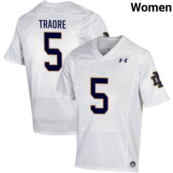 • Notre Dame Fighting Irish #5 Boubacar Traore White Women High School Football Authentic Design Jersey 340B5o96 - wear the same number as your favorite star