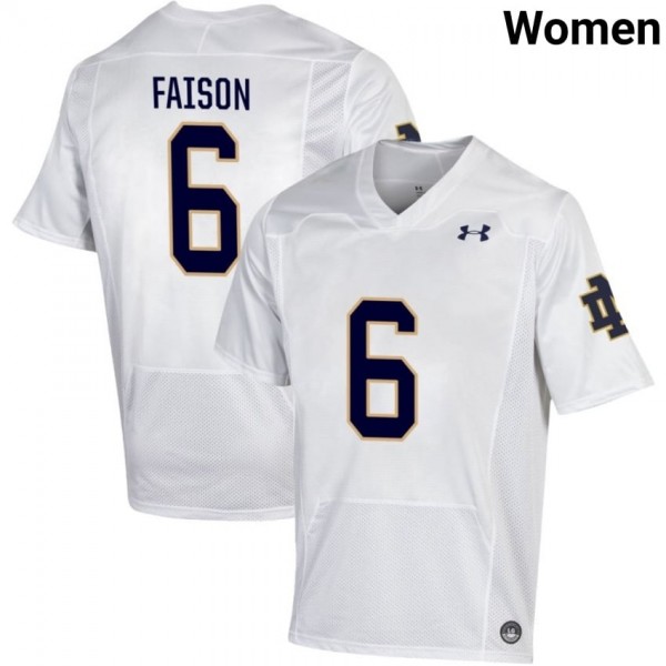 • Notre Dame Fighting Irish #6 Jordan Faison White Women College Football Authentic Design Jersey jTn51695 - wear the same number as your favorite star