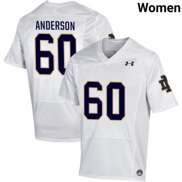 • Notre Dame Fighting Irish #60 Max Anderson White Women NCAA Football Authentic Design Jersey bO02ua98 - wear the same number as your favorite star