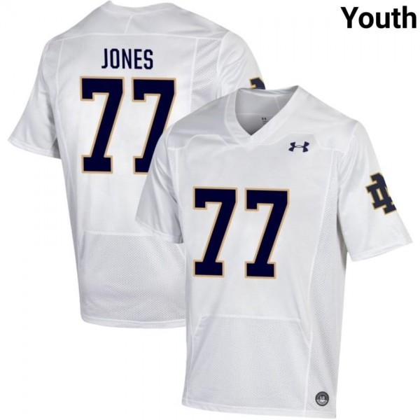 • Notre Dame Fighting Irish #77 Peter Jones White Youth Player Football Authentic Design Jersey 7355on19 - wear the same number as your favorite star