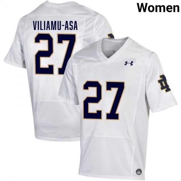 • Women #27 Kyngstonn Viliamu-Asa White High School Fighting Irish Classic Fit Football Jersey 7UMs0098 - wear the same number as your favorite star